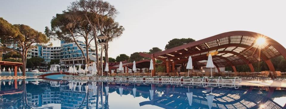 Das 5-Sterne Cornelia De Luxe Resort liegt direkt am traumhaften Strand von Belek und besticht durch ein modernes Design. Es ist ca. 45 km vom Flughafen und ca. 55 km vom Stadtzentrum Antalyas entfernt. Lassen Sie sich nach einer Golfrunde verwöhnen im Crassula ECO Spa oder in einer der anderen Wellnesseinrichtungen wie Hamman oder Sauna. Neben einem umfangreichen Spa finden Sie natürlich auch eine große Poollandschaft, ein Beautysalon sowie ein Shopping-Areal. "All inclusive" heißt im Cornelia De Luxe Resort - Á la Carte mit internationalen, mediterranen und osmanischen Genüssen, bis hin zu asiatischer und französischer Küche. Im Golfresort werden sechs Zimmerkategorien angeboten. Alle Unterkünfte sind erste Wahl und bieten jeglichen Komfort.